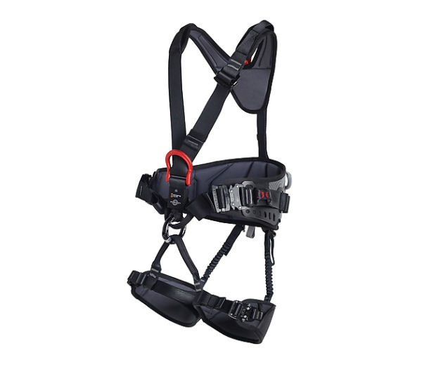 el punto de anticaídas EN 361 delantero (la anilla en D de aleación ligera roja) está situado más abajo de lo habitual y aprovecha al máximo la parte delantera del MOTION SYSTEM