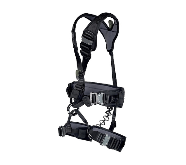 las correas de los hombros y las perneras son totalmente desmontables, el arnés puede utilizarse como arnés de asiento o como cinturón de posicionamiento (táctico) solamente