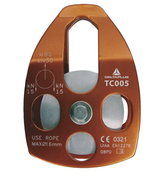 POLEA DELTA PLUS EN ALUMINIO NARANJA PARA CUERDA MENOR A 16MM